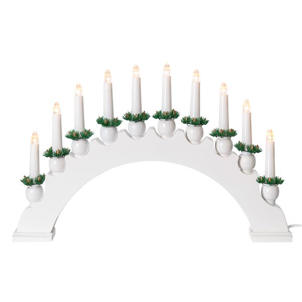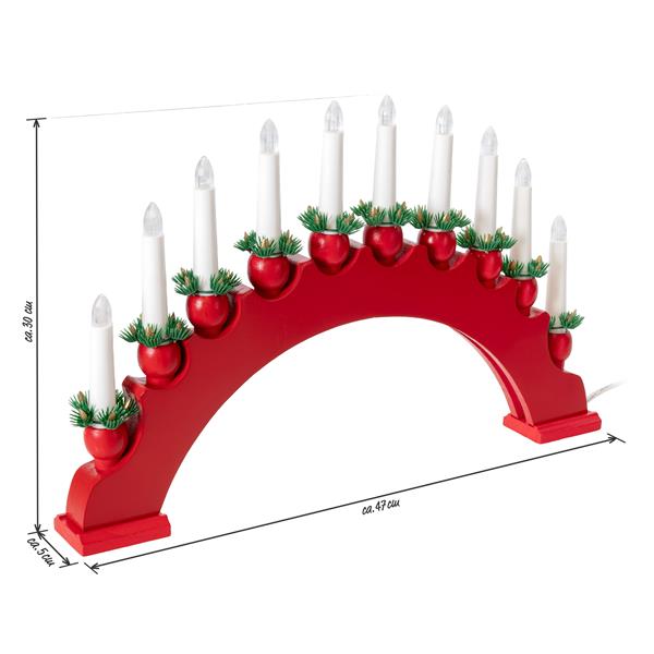 Mit 10 LED-Kerzen in E10 Riffelkerzen-Optik (fest verbaut, nicht auswechselbar)