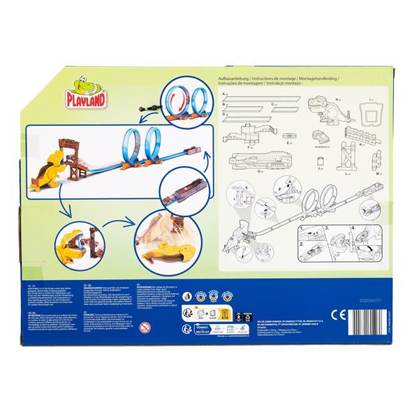 Bereit für den ultimativen Rennspaß? Mit der Playland® Looping-Rennbahn erleben kleine Rennfahrer spannende Action mit Tempo, Loopings und Zielgenauigkeit! Das 17-teilige Spielset beinhaltet eine rasante Rennbahn mit zwei spektakulären Loopings, eine Rampe mit Tiermaul-Zielmechanismus sowie ein Spielzeugauto mit Rückziehmotor – ganz ohne Batterien!
