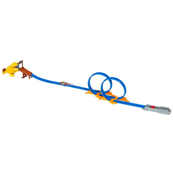 Das Ziel: Das Auto so präzise durch beide Loopings zu steuern, dass es im Maul des Tieres landet – eine spaßige Herausforderung, die Geschick, Reaktionsvermögen und Motorik fördert. Die farbenfrohe Bahn ist aus robustem Kunststoff gefertigt und eignet sich perfekt für Kinder ab 3 Jahren. Der Aufbau gelingt dank der beiliegenden Anleitung ganz einfach – direkt auf der Verpackungsrückseite.