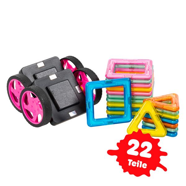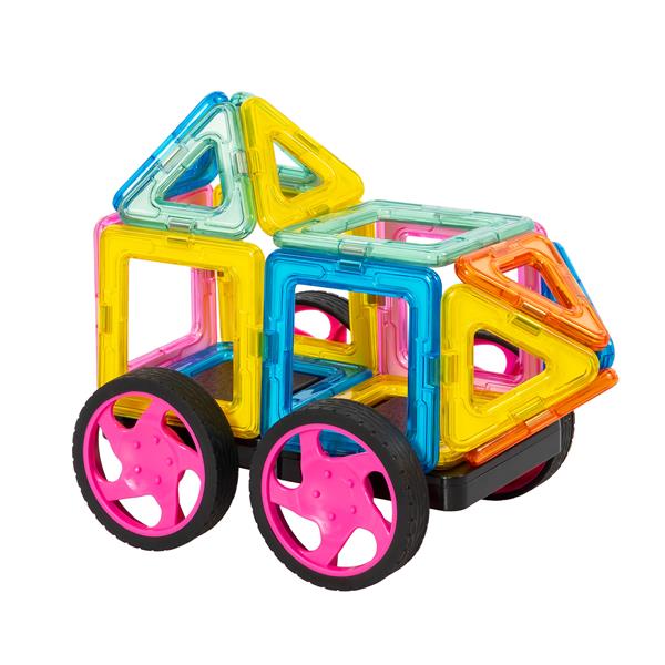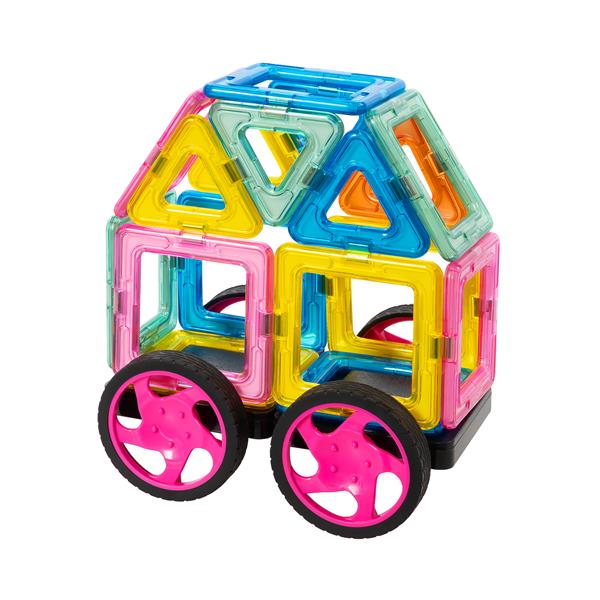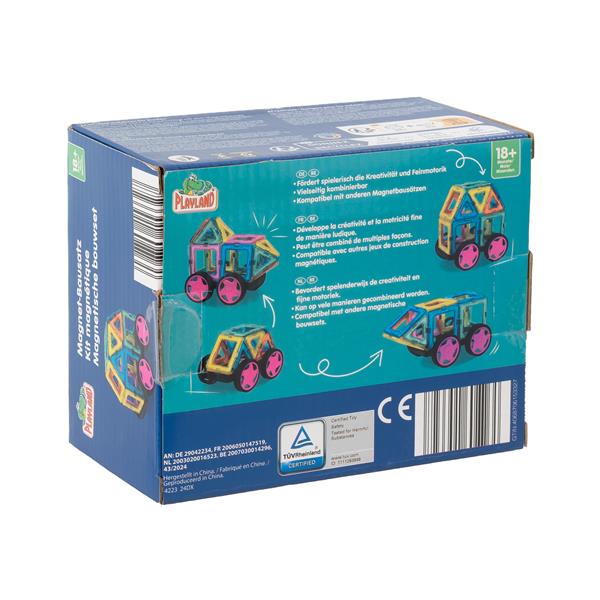 Playland Magnet Bausteine 52-teilig | Magnetspiel | Set mit Rädern | Kinderspielzeug ab 18 Monate | Konstriktionsspielzeug