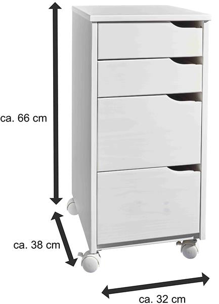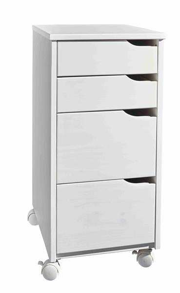 Rollcontainer aus Massivholz (Kiefer, weißlackiert) mit 4 Schubladen