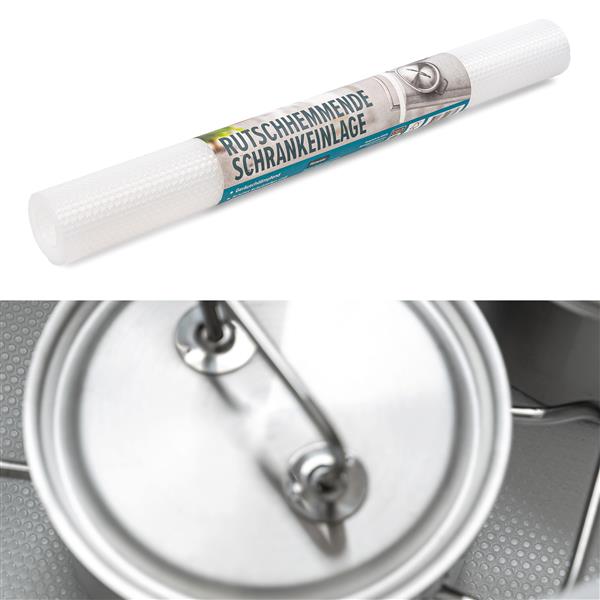 Diese rutschhemmende Schrankeinlage in transparenter Optik ist ideal für den Einsatz in Küche, Bad und Haushalt. Sie eignet sich perfekt für Schubladen und Einlegeböden in Schränken, um Geschirr, Gläser und Küchenutensilien sicher an Ort und Stelle zu halten. Mit einer Größe von ca. 50 x 150 cm lässt sie sich individuell zuschneiden und passt sich so flexibel an verschiedene Schrankgrößen an. Die spezielle Noppenstruktur sorgt für optimalen Halt, während die geräuschdämpfenden Eigenschaften das Klappern in Schubladen reduzieren. Zudem ist die Matte wasserdicht, abwaschbar und leicht zu reinigen, was sie besonders pflegeleicht und vielseitig einsetzbar macht – ideal auch für Büro, Werkstatt oder Wohnmobil.