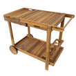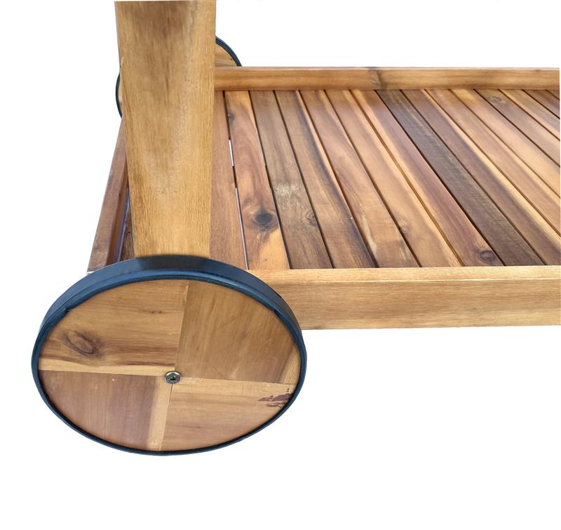 Servierwagen mit Rollen und zwei abnehmbaren Tabletts aus Akazienholz gefertigt, robust und witterungsbeständig, auch ideal als Beistelltisch oder BBQ Tisch im Garten und Balkon geeignet