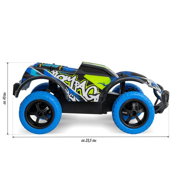 Das Silverlit X-Bull RC Auto bietet actiongeladenen Fahrspaß für Kinder ab 5 Jahren. Mit seinem kompakten Maßstab von 1:38 und einer Höchstgeschwindigkeit von bis zu 8 km/h ist dieses ferngesteuerte Auto perfekt für den Einstieg in die Welt der RC-Fahrzeuge. Die 2,4 GHz-Fernsteuerung sorgt für eine stabile Verbindung ohne Frequenzstörungen – ideal für Rennen mit mehreren Fahrzeugen gleichzeitig.