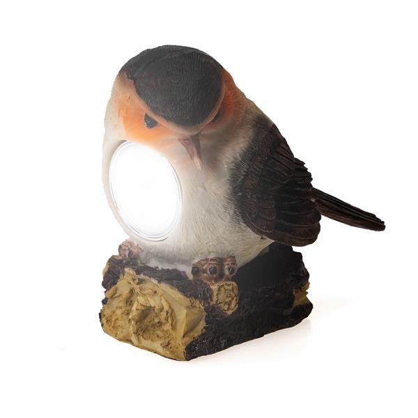 Die Solar LED Vogel-Figur aus robustem Kunststein (Polyresin) ist eine charmante Ergänzung für jeden Garten, Terrasse, Balkon oder Wintergarten. Mit einem weißen LED-Strahler im Bauch strahlt dieser kleine Vogel bei Einbruch der Dunkelheit eine sanfte und beruhigende Beleuchtung aus, die eine warme Atmosphäre schafft.