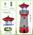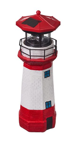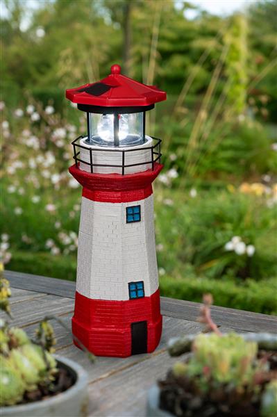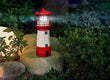 Solar Leuchtturm mit LED Drehlicht für außen | automatische Ein- und Ausschaltung | 28 cm hoch, rot-weiß