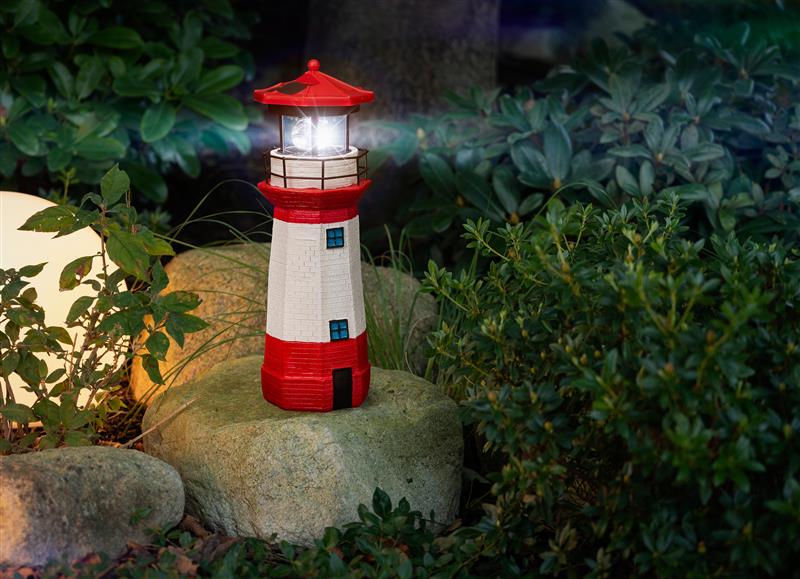 [Blickfang] – Sie möchten mit wenig Aufwand ein Highlight in Ihren Garten zaubern? Dann ist unser Leuchtturm genau das richtige. Ganz egal ob im Garten, auf der Terrasse, auf dem Balkon, im Beet zwischen den Blumen oder toll in Szene am Teich gesetzt, unser Solar LED Leuchtturm wird mit seinen ca. 28 cm im rot-weißen Design zu einem Blickfang. Ganz egal ob am Tage oder im Dunklen wenn das Leuchtfeuer den Gästen den Weg weist.