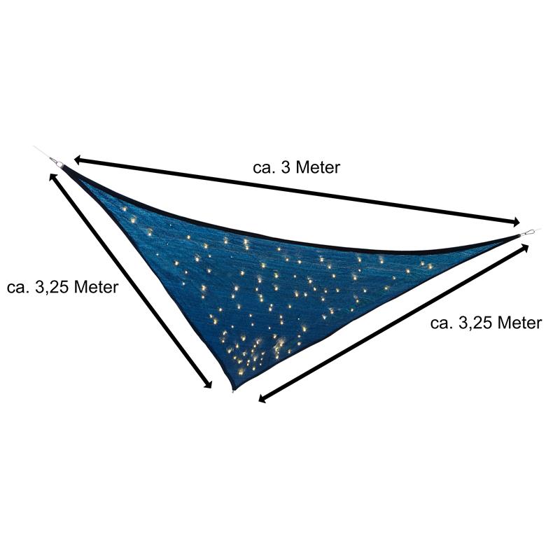 Sonnensegel mit 110 warmweißen Lichtern, Solar oder Netzsteckerbetrieb, dreieckig