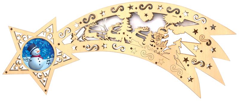 Sternschnuppe aus Holz inkl. Fernbedienung, mit 10 LED´s (Motiv: Schneemann)