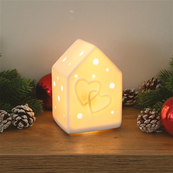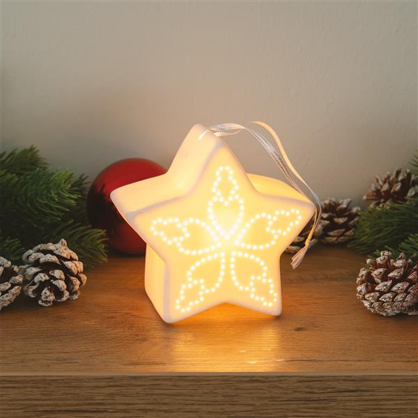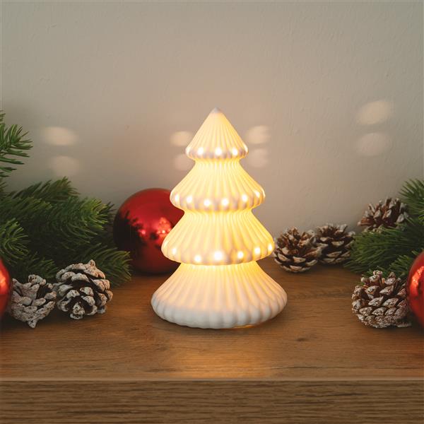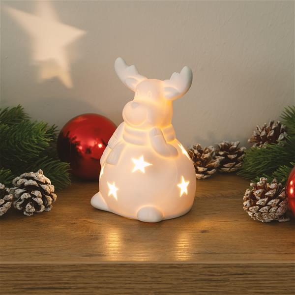 Verleihen Sie Ihrem Zuhause in der Advents- und Weihnachtszeit eine ganz besondere Stimmung mit unseren stilvollen Porzellan-Dekoleuchten mit LED-Beleuchtung. Die hochwertigen Figuren – wahlweise als Stern, Tannenbaum, Häuschen oder Rentier – bestehen aus edlem Porzellan und strahlen dank der integrierten warm-weißen LEDs ein behagliches Licht aus. Durch die feinen Lochmuster im Porzellan entsteht ein stimmungsvoller Lichteffekt, der Wände und Umgebung sanft erhellt und für eine gemütliche Atmosphäre sorgt.
