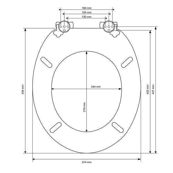 [Metall Scharniere] Die hochwertigen verchromten und rostfreien Metallscharniere aus Zink bieten einen sicheren Halt auf der Toilette. Die Scharniere des Toilettensitzes sind verstellbar. Dadurch ist der Toilettendeckel auf fast allen handelsüblichen Wand- und Stand-WCs universell passend. (Abstand der Montagelöcher: ca. 130 mm – 180 mm // Länge der Wc-Brille: ca. 425 mm – 437 mm