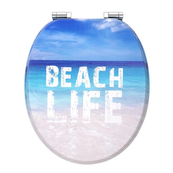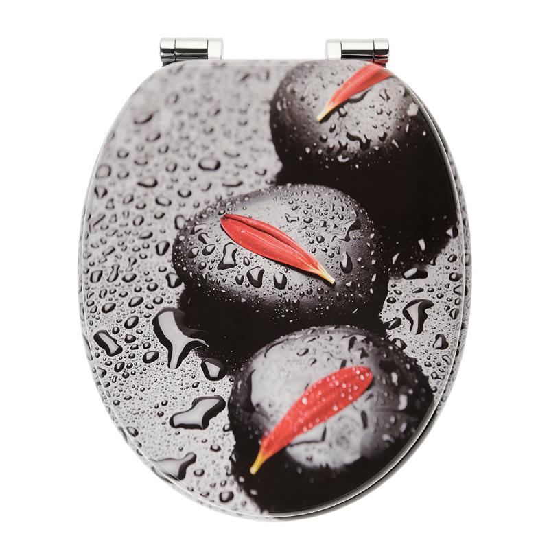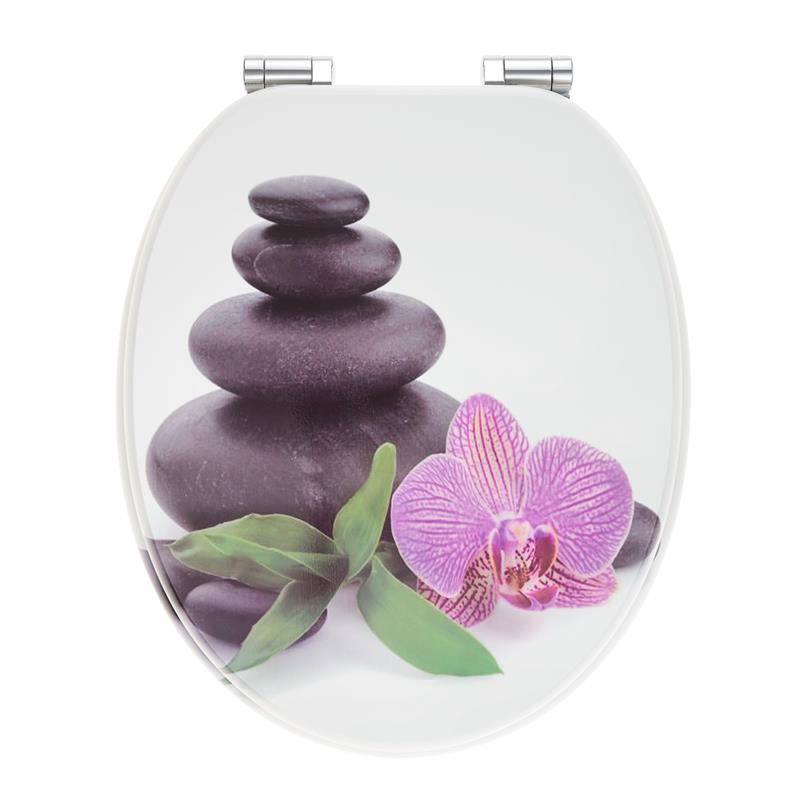 [Holz WC-Sitz mit Motiv] Holzkern (MDF) WC-Sitz mit zeitlosem und modernen 3-seitigem Design-Druck. Bedruckt sind der WC-Deckel (Ober- und Unterseite) und der WC-Sitz oberseitig. Die Unterseite der Sitzvorrichtung ist im klassischen Weiß gehalten.