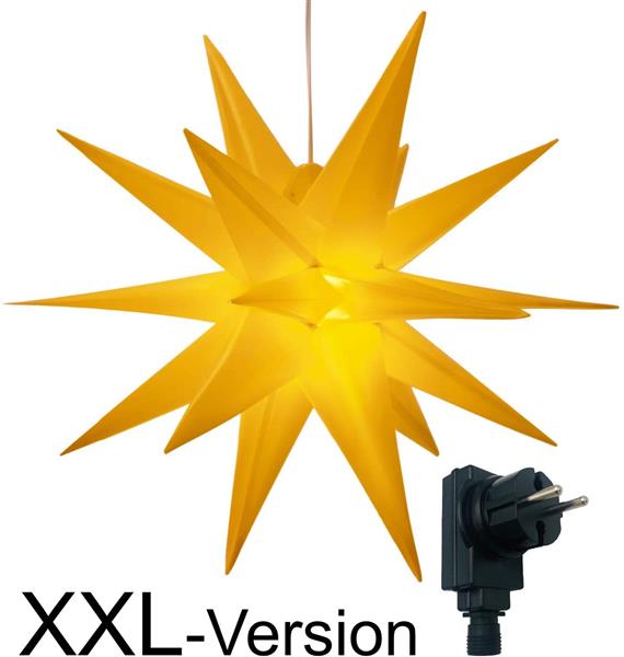 Unser beliebter, wetterfester Leuchtstern ist aus robustem Polypropylen gefertigt. Durch die 18 Spitzen, die sich rundherum vom Stern erstrecken, entsteht dieser fabelhafte 3D-Look. Mit diesem 3D-Design wird der Stern garantiert zu einem Hingucker.