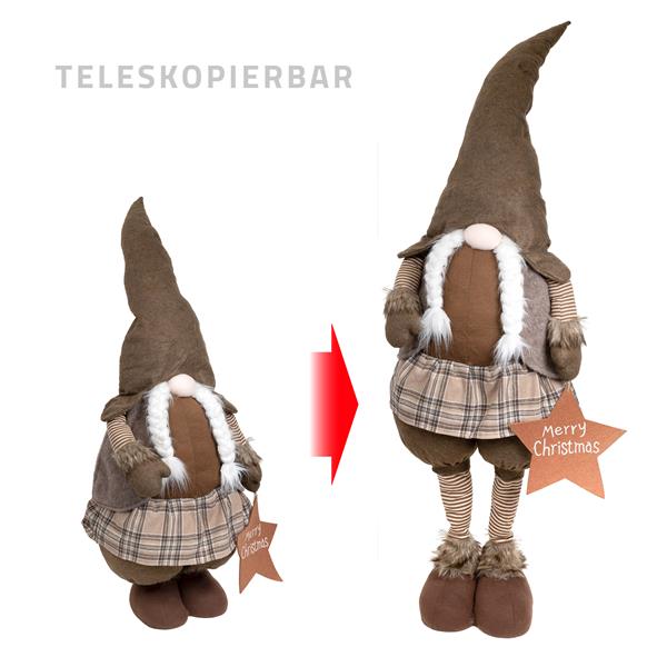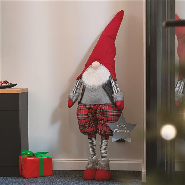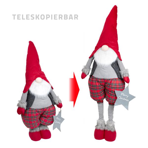 Dieser XXL Weihnachtswichtel mit einer maximalen Höhe von ca. 160 cm bringt festliche Stimmung in Ihr Zuhause. Gefertigt aus hochwertigem Stoff und Filz, überzeugt der Wichtel durch seine liebevoll gestalteten Details wie die lange Wichtelmütze und den charakteristischen Bart. Die Teleskopbeine ermöglichen es, die Höhe individuell anzupassen, sodass der Wichtel perfekt in Ihre Weihnachtsdekoration passt.